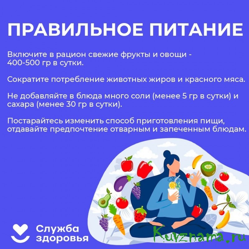 - адекватная физическая активность (не менее 150 минут умеренной или 75 минут интенсивной физической нагрузки в неделю);