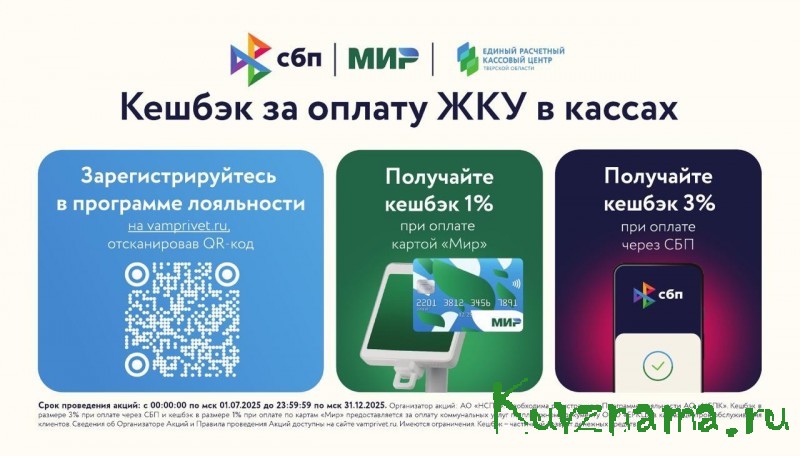 Единый расчетно-кассовый центр приглашает жителей г. Твери и Тверской области воспользоваться акциями «Кешбэк за оплату ЖКУ через СБП в ЕРКЦ города Твери и Тверской области» и «Кешбэк за оплату ЖКУ картой «Мир» в ...