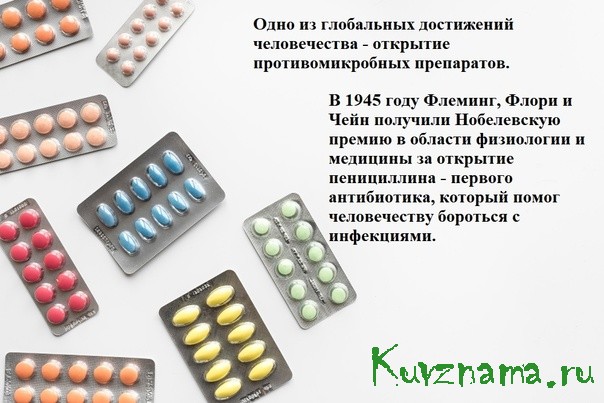 Почти сто лет назад ученый Ян Флеминг открыл первый антибиотик пенициллин. К слову сказать произошло это по большей части случайно: ученый плохо вымыл чашки Петри со средами для выращивания бактерий; на них выросла плесень, вокруг которой роста бактерий не было. На основе плесени был синтезирован первый антибиотик пенициллин. Это стало началом практически новой эры в фармацевтике и медицине. Тысячи раненых во вторую мировую войну были излечены от раневой инфекции, выздоравливали пациенты с сепсисом, врачи успешно справлялись с послеродовыми и послеоперационными осложнения. Сегодня в нашем распоряжении широкий арсенал антибиотиков, способных противостоять многим болезням.