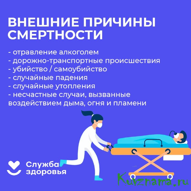 Внешние причины — это не болезни, а обстоятельства, которые приводят к гибели людей. Они могут быть преднамеренными (например, убийства) или случайными (например, несчастные случаи).Среди случайных факторов выделяют алкогольное отравление, ДТП, падения, утопления и другие.Почему важно понимать эти причины? Их можно предотвратить. Средний возраст погибших от внешних факторов — это дети и трудоспособные взрослые.Особенно выделяется проблема алкоголя. Часто выявляются алкогольные отравления. Однако алкоголь — не единственная причина смертности. Люди гибнут в ДТП, получают ожоги, задыхаются или травятся наркотиками.Алкоголь опасен не только для тех, кто его употребляет. Он становится причиной несчастных случаев, в которых гибнут и трезвые люди.Летом особенно важно обеспечить безопасность и взрослым, и детям во время отдыха. Вот несколько простых, но важных правил, которые помогут избежать неприятностей:На воде:Не купайтесь в незнакомых местах, а детей не отпускайте одних даже в знакомых водоёмах.Не ныряйте, если не знаете глубину и рельеф дна. Это особенно опасно для детей и молодых людей, особенно в нетрезвом виде.Используйте надувные круги и жилеты для детей.Держитесь подальше от катеров и пароходов, которые могут резко изменить скорость.Будьте внимательны к другим пловцам.Не переохлаждайтесь, даже если долго находитесь в воде или рядом с родником.На природе:Планируйте маршрут похода, учитывая погодные условия и особенности местности.Если есть возможность, отправляйтесь в поход с опытными инструкторами.Будьте осторожны со спичками и зажигалками. Не разжигайте костёр рядом с сухими деревьями и не бросайте в огонь посторонние предметы.Тщательно заливайте костёр водой, чтобы он полностью погас.В пеших походах старайтесь не сходить с тропы.Двигаясь по дорогам, идите по обочине навстречу потоку машин.Соблюдайте правила дорожного движения на велосипеде, держите безопасную дистанцию и следите за другими велосипедистами.В тёмное время используйте фонари и светоотражающие элементы.Во время грозы не прячьтесь под одинокими деревьями, на возвышенностях и открытых местах, а также вблизи металлических или сетчатых оград.Откажитесь от алкоголя во время отдыха на природе.На дороге:Объясните детям, что переходить дорогу можно только по пешеходному переходу или на зелёный свет светофора.Не разрешайте им играть на проезжей части или рядом с движущимся транспортом.Несчастные случаи часто происходят из-за неоправданного риска и пренебрежения правилами безопасности, особенно если человек употребляет алкоголь. Помните, что внешние причины могут привести не только к смерти, но и к инвалидности.Берегите себя и своих близких!