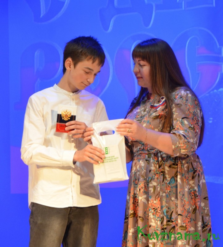 Под аплодисменты зала четверо юных кувшиновцев – Максим Взводный, Александр Елецкий, Дарья Хатина и Евгения Тараник – получили главный документ граждан РФ – паспорта. Заместитель главы администрации округа Мария Русакова, вручая их, обратилась к ребятам с напутственными словами, подчеркнула важность активной жизненной позиции и патриотизма юных кувшиновцев. Ведущая добавила: «Желаем всем нашим юным землякам быть достойными гражданами своей страны, укрепляя авторитет своего города и могучей многомиллионной России!»